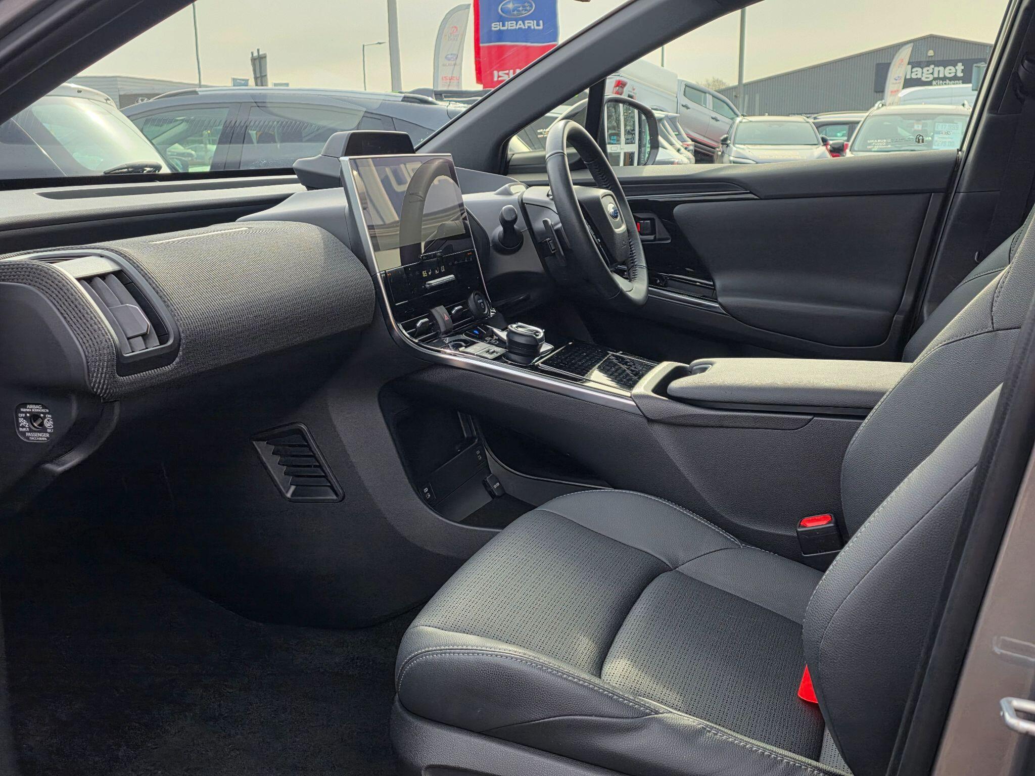 This 2023 Subaru Solterra Touring is a superb example, having had only one owner and boasting exceptionally low mileage for its age at just 10861 miles, it also benefits from Subaru manufacturer approval. This electric vehicle offers Four Wheel Drive capability and a substantial 71 kWh battery, providing a maximum range of 257 miles when new. Charging is convenient, with a full charge at home using a 7kW charger taking approximately 9 hours, and rapid public charging can take the battery from empty to 80% in as little as 25 minutes.