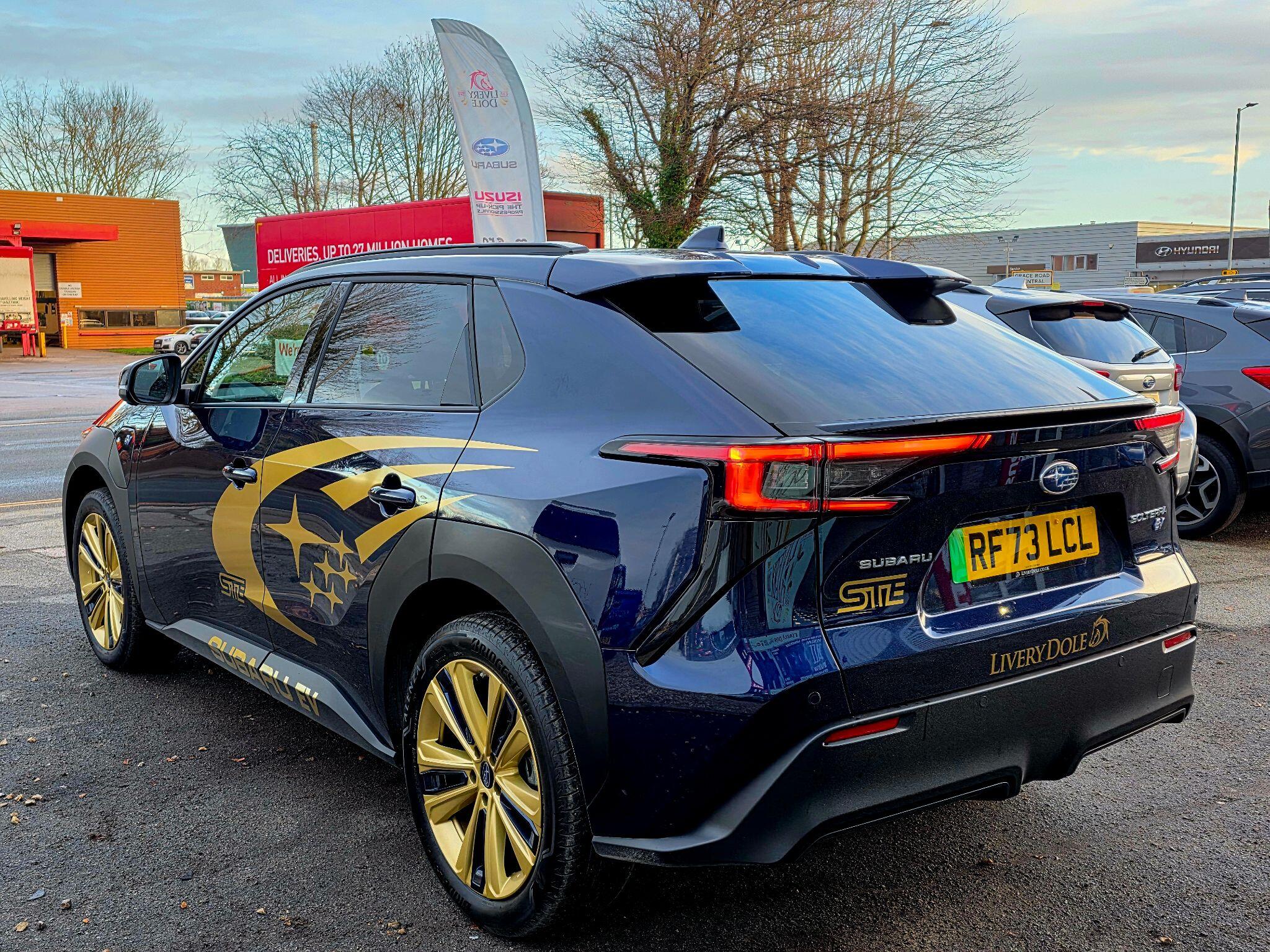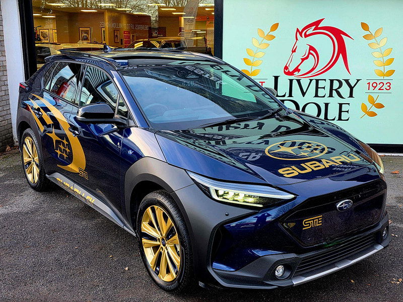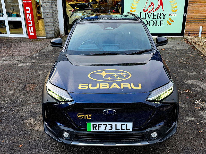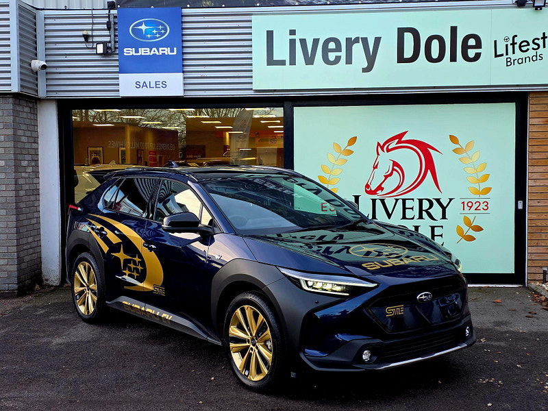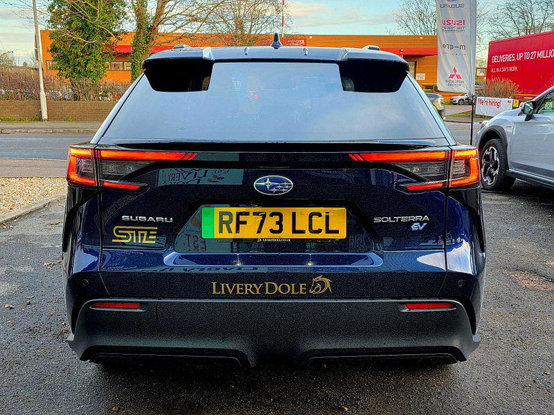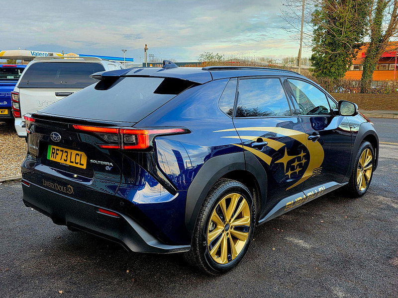 Exclusive to Livery Dole this Subaru Solterra STE is a homage to Subaru's WRX STI Heritage. This 2023 Subaru Solterra Touring is a superb example, having had only one owner since new. As an all electric vehicle, it offers a smooth and quiet driving experience, powered by a 71 kWh battery that provides a maximum range of 257 miles. Its Four Wheel Drive system ensures confident handling in various conditions. This Touring model comes equipped with a Digital Rear View Camera with Washer and Parking Assistance, alongside Subaru Safety Sense, which includes Blind Spot Assistance and Adaptive Cruise Control. Comfort is further enhanced by Heated Rear Seats, Dual Zone Automatic Air Conditioning with an Anti Dust Filter, and a Heated Steering Wheel.